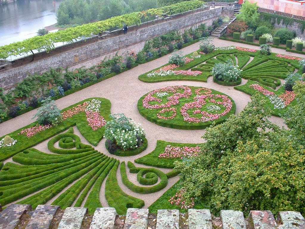 Este tipo de plantación resulta apropiada para proporcionar un tema sencillo, simétrico y arquitectónico, con límites y setos divisorios recortados con precisión. Es posible incluir macizos, nudos o parterres, con plantaciones bien equilibradas y controladas dentro de los macizos, utilizando colores, formas y texturas.